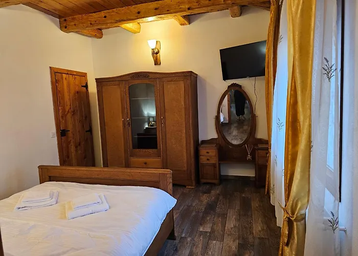 - ❓What are the good restaurants not far from Rustik apartment?Guests can choose to dine at Four Roses, a barbecue offering Romanian dishes located 300 meters from Rustik apartment. Alternatively, they can relish international dishes at Trattorian Brunchies, conveniently situated about a 15-minute walk away.